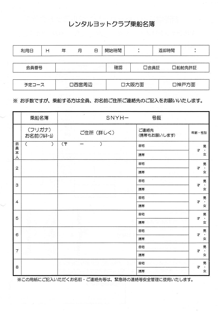 ※氏名、学年、年齢、緊急連絡先、艇長氏名、艇長ケータイ
