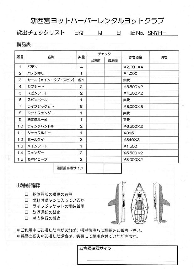 ・双眼鏡、海図、ウインチハンドル(予備のハンドル)を持ち込み必須に